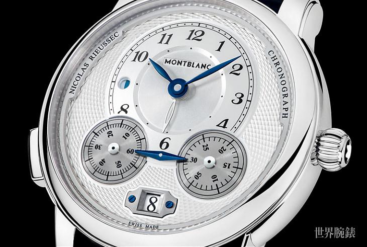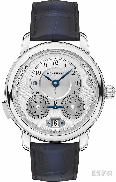 于此同时,新款Nicolas Rieussec计时码表配置了两个直线排列的旋转盘,分别为60秒计时以及30分鐘计时盘;与原表款相同的固定双头指针则位于计时盘上方,并以偏心式表盘的鏤空指针指示第二时区的时间。而该表款具备30米防水性能,并经通过万宝龙实验室的500小时测试。表带部分则选用蓝色晕染的鱷鱼皮材质,并搭配不锈钢叁折式表扣的设计;该表带系由万宝龙位于义大利佛罗伦斯的Montblanc Pelletteria工坊打造,在强化腕表美感上自有一定的加分效果。