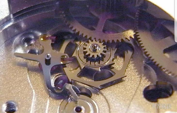 ▲同轴擒纵的心臟,可以看到叁层同轴齿轮。