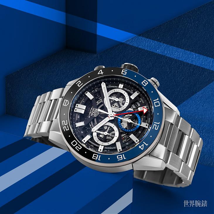 ▲为了纪念Carrera系列问世55週年,泰格豪雅于Heuer 02机芯叠加两地时间功能,打造最新作品。