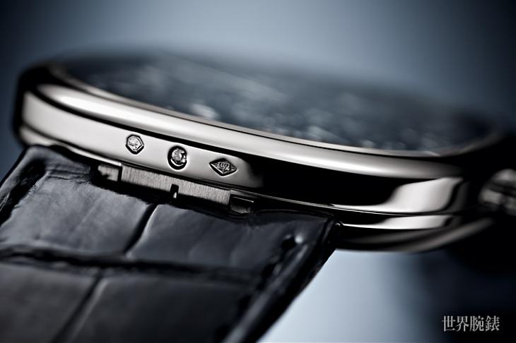 ▲介乎圆形与长形之间的表壳是Golden Ellipse的最大特色,Ref. 5738/50P-001保有系列精髓之餘并用上尊贵的铂金打造表壳。因为铂金表壳的关系,故可在表壳六点方向发现一颗钻石。