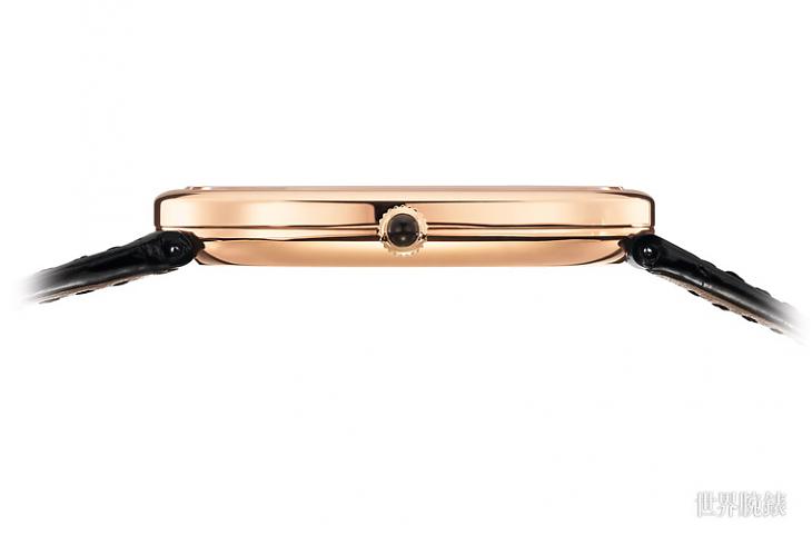 腕表堪称匀称与纯净杰作,由240机芯驱动,22K金微型自动盘完全嵌入夹板桥底板之中,令表壳十分修长(仅厚五点九毫米),腕表搭配玫瑰金表壳底盖。全表作工精炼,配以亮丽黑色鱷鱼皮表带更显突出。表带由人手缝制,方形纹理;玫瑰金针扣与表壳特色轮廓相互呼应。时计一如同系列其他款式,表带连接物含蓄地藏于表侧之内,让目光凝聚表身着名椭圆形状之上,誌庆系列面世五十週年。