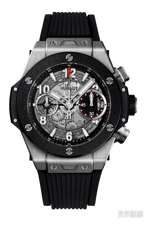 钛金属、陶瓷材质/HUB1280自动上链机芯/时、分、小秒、日期显示/计时码表功能/蓝宝石水晶镜面/防水100米/表径42mm