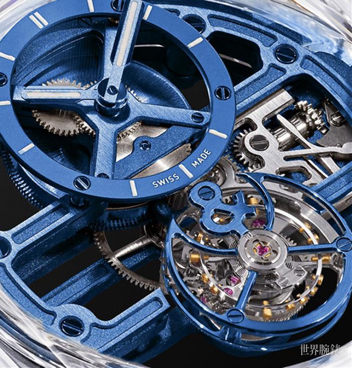 ▲打破透明表壳银白色调的惯例,BELL & ROSS推出机芯带有多重色调的BR X1蓝宝石玻璃陀飞轮腕表,其中黑色与蓝色机板款式只限定网路贩售。图片来源:mrporter.com