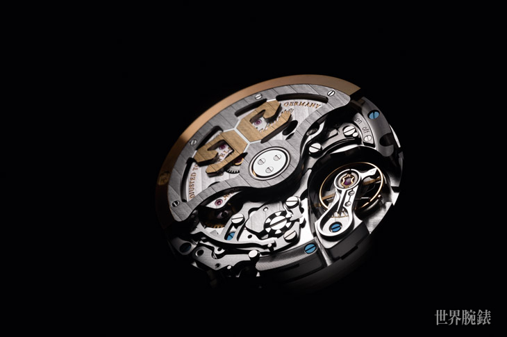 ▲37-01 计时机芯具备飞返机制与12小时计时器,并且具备70小时动力储存。