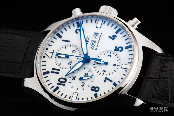 ▲一目了然的功能分佈面盘是IWC德系飞行表的风格,本次改为白色漆面后整体视觉更带点清新感。