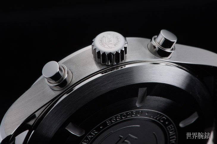 IWC飞行员计时腕表「150週年」特别版保留了德国空军Luftwaffe飞行表中12点鐘位置的三角形时标和旁边两个圆点,这个是1930~1940年(包含二战时期)德国空军飞行表的面盘设计,本意是容易辨识12点。而腕表计时码表功能的佈局则採左三眼的设计,右侧则是独立两个视窗个别显示星期与日期,都是突显出飞行仪器的设计风格,以白色漆面为底饰以黑色时标与刻度,对比分明的用色增添了腕表整体的可读性。腕表採用旋入式表冠设计,旋开表冠后透过简单的拉出不同段数的表冠,即能轻鬆调校以上功能。