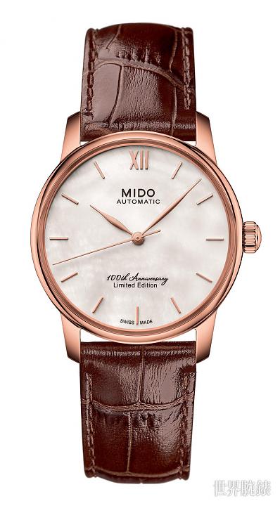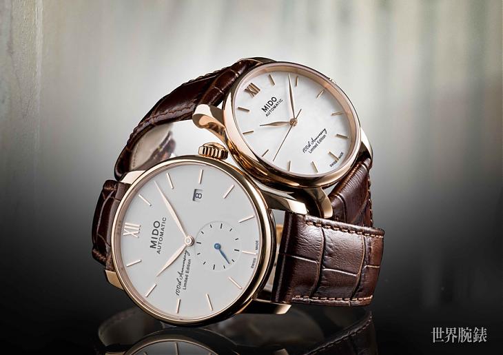 ▲全新Baroncelli永恆系列100週年限量对表延续MIDO美度表的设计传统,女表的白色珍珠母贝面盘映衬细致优雅,男表则以拋光象牙白漆色面盘展现高雅。