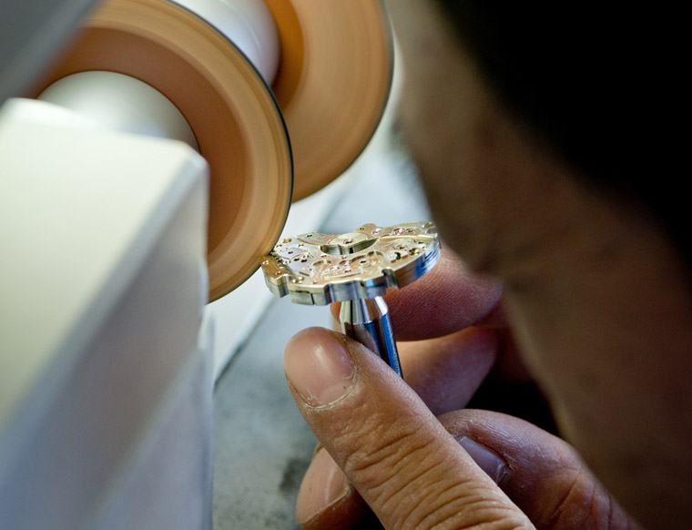 百达翡丽精密的机芯零件精饰工序非常考究,必须兼顾功能及美感,每枚机芯零件由机器制造出来后,都需要再经过手工精饰和装饰处理,即使许多零件在装配好之后可能永远不会为人所见。从超级复杂功能到经典款式时计的机芯,百达翡丽的所有机芯均採用同样的制作工序。一些特别的零件表面因为尺寸太小,肉眼几乎无法看清,精饰工匠需要佩戴放大镜工作。这项严谨细微的精饰工作由经验丰富的工匠完成,工作的完美及精确是他们追求的最高目标。他们的成就在于时计中的每一枚零件必须经过他们亲手打磨修饰,方能和谐运转。精饰的品质不仅决定着零件的表现,还决定了它们的寿命。以下就来欣赏一枚百达翡丽机芯会经过哪些细部修饰工序。