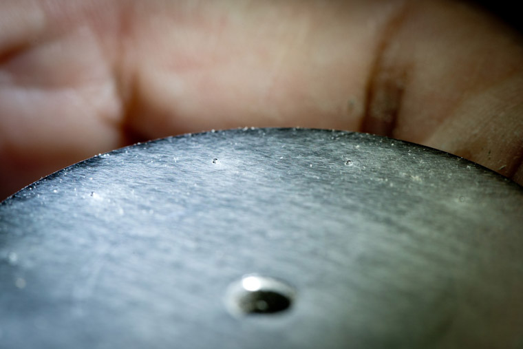 使用手动车床和金刚砂纸将黄铜和镍黄铜部件严格磨平,令其表面呈现出精细的圆形线条。
