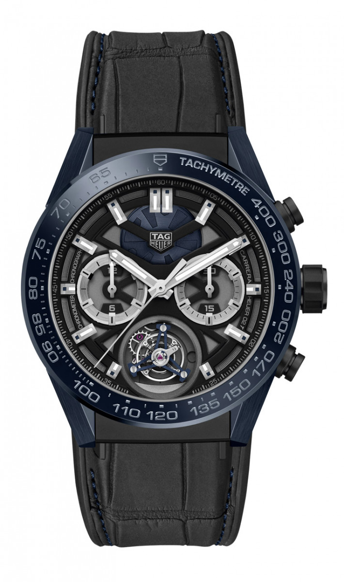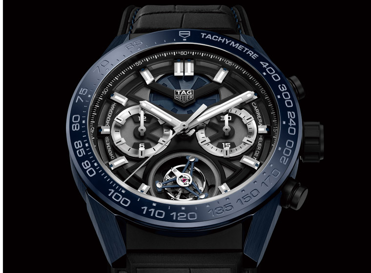 全新的Carrera陀飞轮计时表款拥有两大复杂功能:陀飞轮和计时功能,机芯零件均是品牌原厂研发制造,外观设计上,以具当代时尚感的手法来打造,机芯置于夜蓝色的陶瓷表壳中,搭配同为陶瓷材质的表圈及表耳,所有的饰面经拋光、磨砂及微喷砂处理,展现瑞士制造一丝不苟的精神;此外印压于表桥处的荣誉天文台标记,可透过蓝宝石水晶镜面清楚看见。此外,新表还配备缀以蓝色缝线的黑色鱷鱼皮表带,沿袭Carrera系列一贯的优雅风格。
