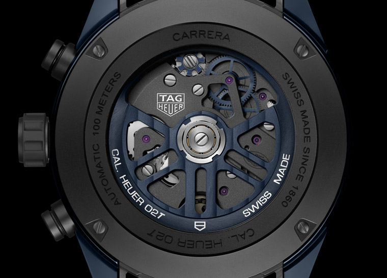 评点三:Heuer-02T机芯第一次搭蓝色陶瓷壳