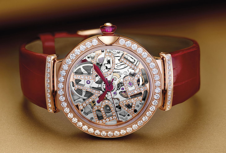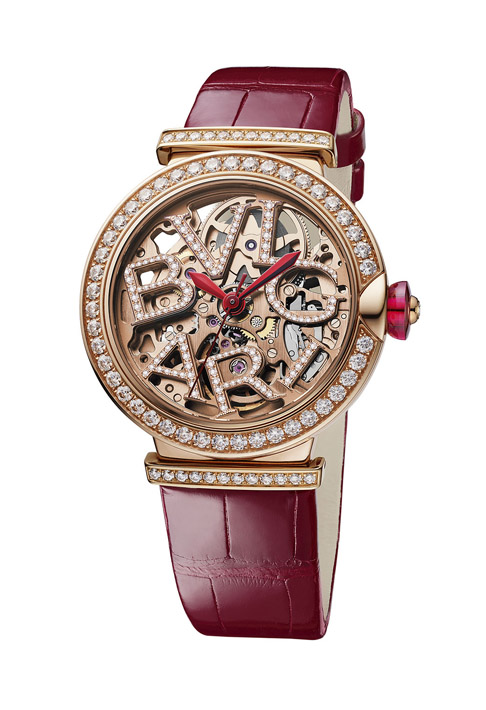 18K玫瑰金材质/BVL 191 SK自动上链机芯/时、分、秒显示/表款镶钻/蓝宝石水晶镜面、透明底盖/防水50米/表径33mm/参考价:NT$ 927,000