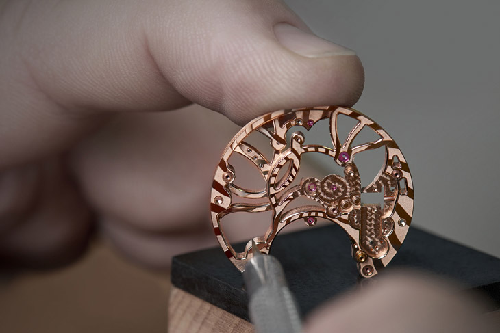 ▲宝格丽特别改良Calibre BVL 191 SK自动上链机芯外型,配合腕表精致无可挑剔的镂空设计。