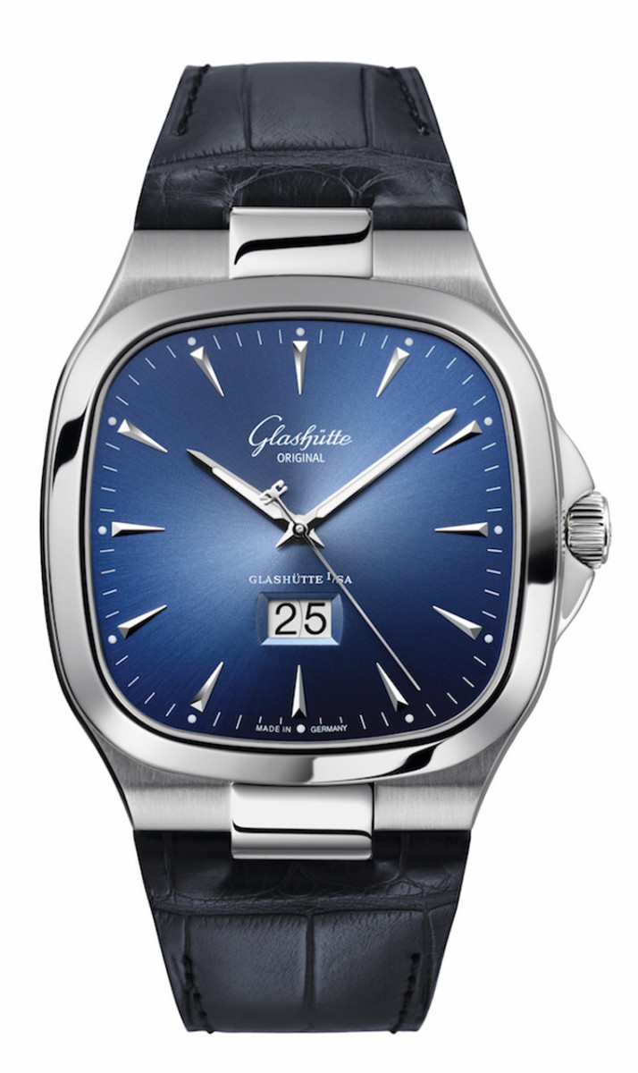 ▲格拉苏蒂原创的Seventies乃是以品牌1970年代推出的Spezichron为原型,少见的方形表壳搭配品牌招牌的大日期显示,具有相当高的辨识度。
