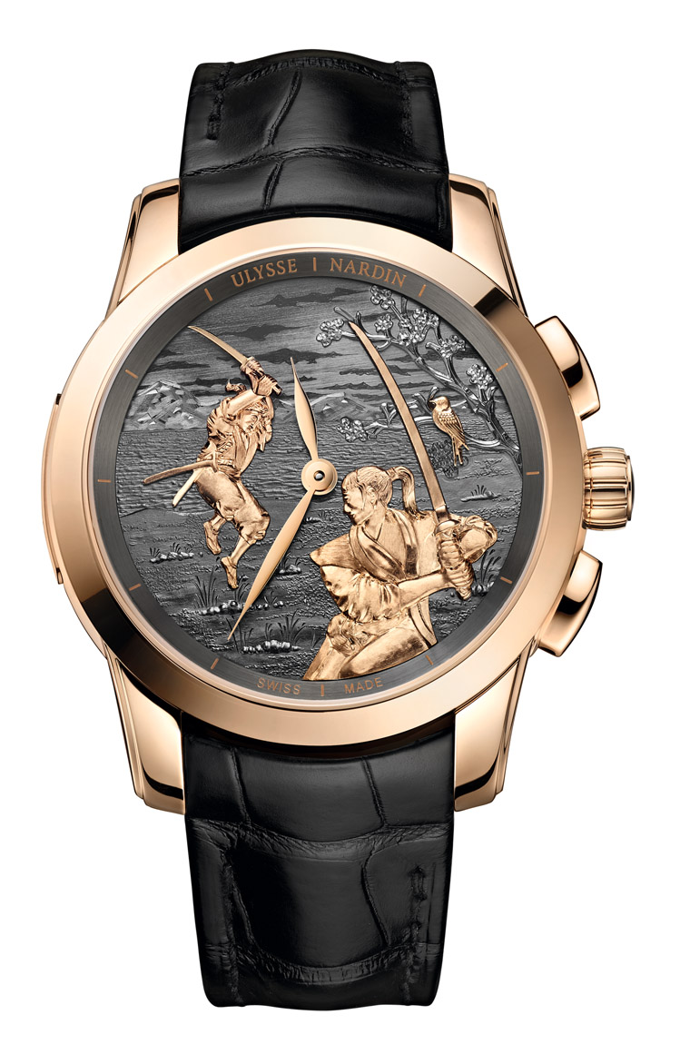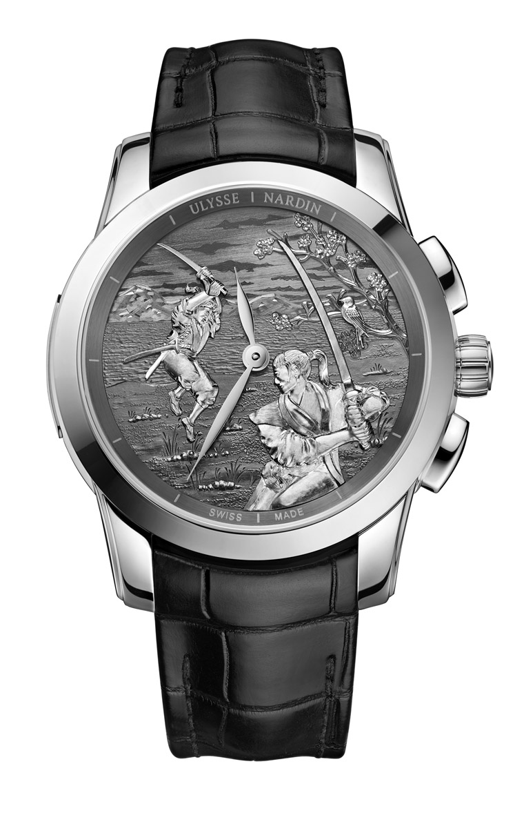 ULYSSE NARDIN雅典表推出新作经典系列武士单问报时表,向日本文化致敬。“Samurai”源于日语“Saburai”(武士),意指侍奉于主君身侧。自8世纪以来,这个词被用来指代「为贵族服务的勇士」。但是武士并非士兵或雇佣兵,而是会将身心奉献给他们的主君和他们擅长之剑术的战士。在经典系列「武士单问报时表」的面盘上,雅典表的工匠们用日本版画再现了两位传奇武士宫本武藏(Miyamoto Musashi)和佐佐木小次郎(Sasaki Kojiro)的着名决斗。