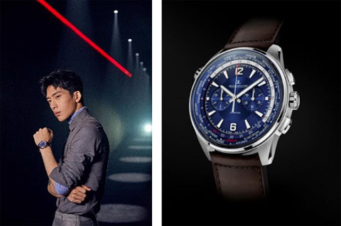 积家品牌挚友井柏然佩戴积家北宸系列世界时间计时码表出席积家慈善晚宴。时计有一个固定的内表圈,上面写着24个城市的名称:3点钟和9点钟的位置分别拥有30分钟计数器和12小时计数器。深蓝色面盘採用三种渐变色和三种工艺装饰:乳白色表圈、粒化工艺和放射状拉丝工艺,予人一种多样的感官体验和视觉冲击,彰显别致的时尚气息,突显腕表独特的精髓。
