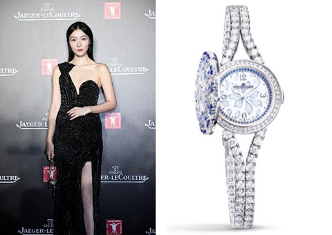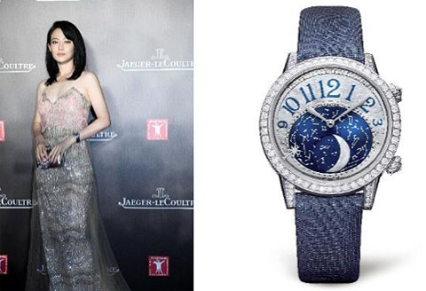 ▲王真儿佩戴积家Rendez-Vous Moon约会系列月相腕表出席积家慈善晚宴。