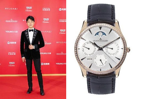 ▲明道佩戴积家Master Grande Tradition大师系列超卓传统八日长动力万年历镂空机芯腕表亮相第21届上海国际电影节红毯及积家慈善晚宴。
