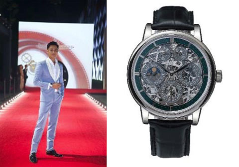 ▲吴克群佩戴积家Master Ultra Thin Squelette超薄大师系列镂空腕表亮相第21届上海国际电影节红毯及积家慈善晚宴。