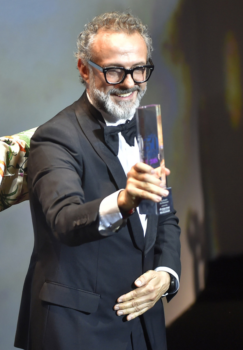 ▲米其林三星主厨Massimo Bottura在西班牙Bilbao揭晓的2018年全球最佳50间餐厅,再度荣居第一名位置,颁奖典礼当晚他佩戴沛纳海PAM00438腕表接下奖座。