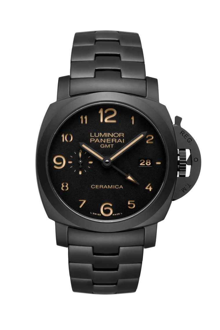 PAM00438/陶瓷材质/P.9001/B自动上链机芯/时、分、小秒、日期显示/两地时间显示/蓝宝石水晶镜面、透明底盖/防水100米/表径44mm/参考价:NT$ 468,000