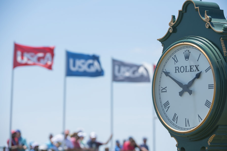 ▲第118届年美国公开赛期间,在辛尼科克山球场会所的劳力士时钟及美国高尔夫球协会旗帜。 ©Rolex, Chris Turvey
