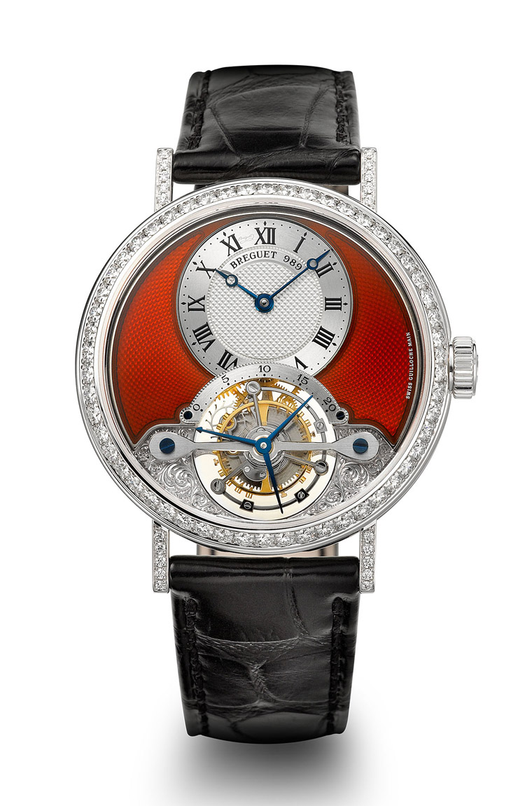 18K白金材质/558.1手动上链机芯/偏心时、偏心分、小秒显示/陀飞轮装置/珐琅面盘/表款镶钻74颗/蓝宝石水晶镜面/防水30米/表径35mm/参考价:NT$ 3,798,000