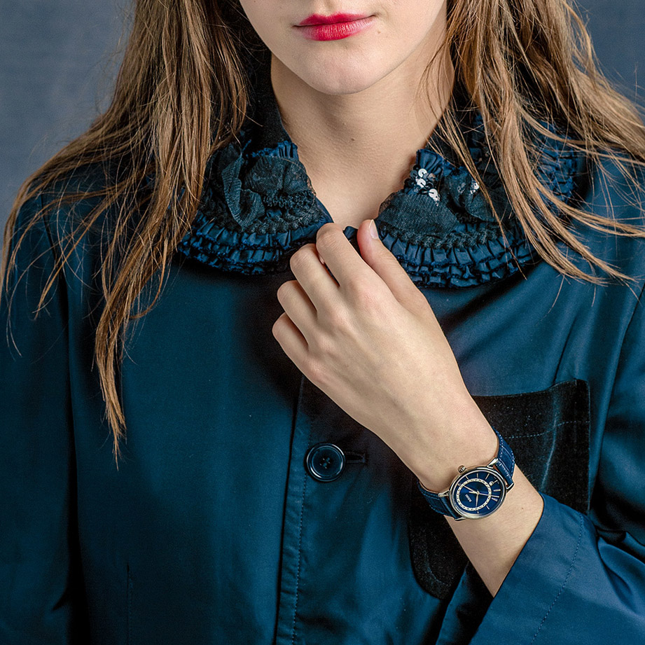 稳重优雅、简约大方,随着手腕摆动而闪烁,堪称沉稳内敛代表作的Diamaster系列电浆高科技陶瓷女士腕表,开阔的蓝色面盘点缀24颗美钻在设计上构成低调奢华的偏心环,伴随外圈放射纹理呈现双重耀眼光芒,宛如戒指般闪耀圈住湛蓝夏季。极致细腻冷艳金属色彩、稳重的蓝色皮表带,同样拥有着轻盈、不易磨损且抗敏的特性,女性光彩温柔绽放。精致面盘优雅地固定于腕间,随时随地为你的夏天生活加分。