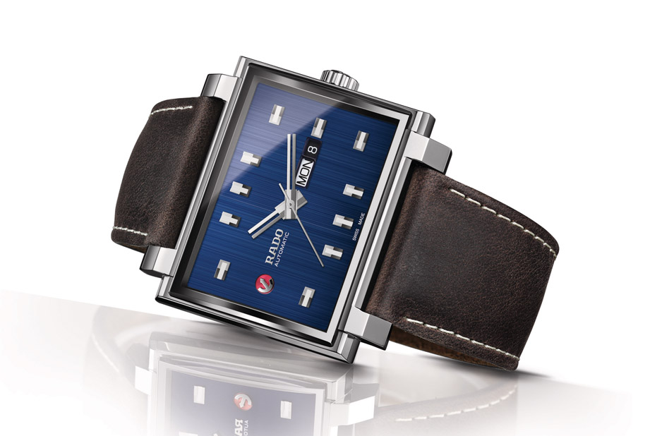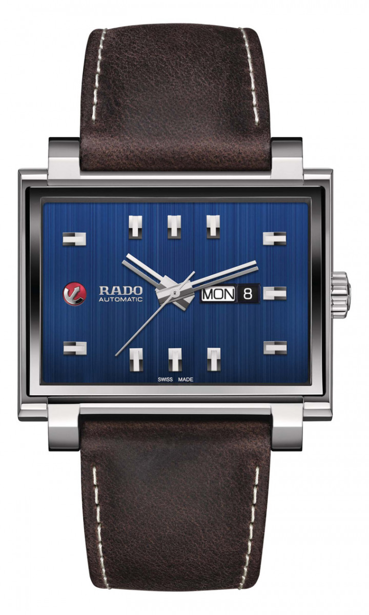 Tradition 1965 复刻系列超大型自动腕表包含标志性的红色锚型标志,象徵自动机械机芯,随着腕表移动而来回摆动。蓝色面盘搭配垂直磨砂纹理及内敛的皮革表带出复古感,水蓝色表面及蓝宝石水晶表镜搭配独具特色的「音叉」设计时针和分针,布局清晰,易于读时。1965年的原版设计散发浓郁的几何风格,搭配矩形时标和分标、方形日期窗、硕大的表壳尺寸和枕型底盖确保了佩戴的舒适感。该腕表是传统经典与21世纪相互糅合的最佳典范,也是对雷达表1960年代非凡之作的致敬。