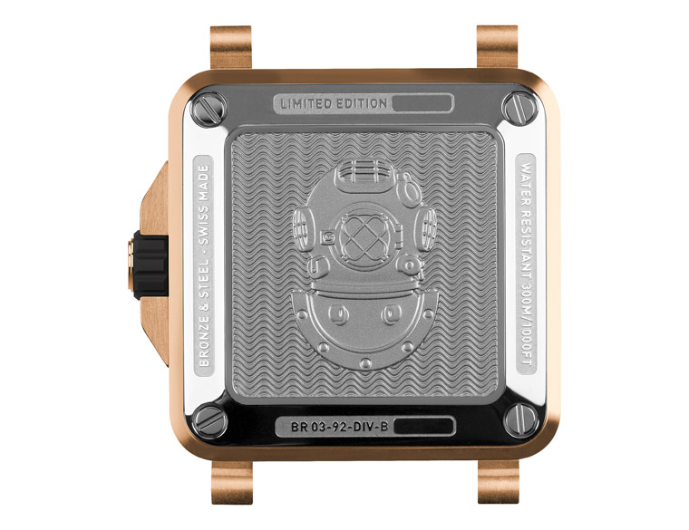 ▲BR03-92潜水表为柏莱士首款方形潜水表,比起圆壳潜水表,其防水结构的制作更不容易,从中也可看出品牌制表技术益发成熟。