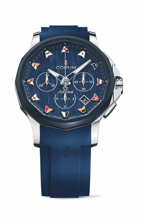 两款全新海军上将Legend 42腕表均採用木质面盘。第一款以蓝色橡胶表圈搭配蓝色柚木面盘,让人联想到古老船只上的柚木甲板。其中一款腕表配备两枚中央指针,6点钟位置设有小秒针,3点钟位置设有日期显示。第二个表款配备计时码表功能,日期显示位于4点30分位置,为Bicompax计时器组合开闢空间(9点钟位置设 30分钟计时器、6点钟位置设小时计时器),更显其日常佩戴及运动功能表现。