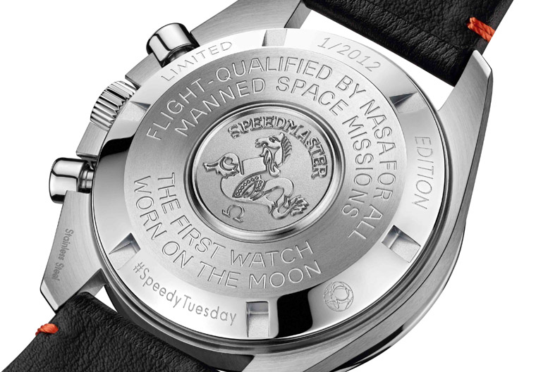 面盘上的复古欧米茄标志流露典雅气息,表背则鐫刻”#SpeedyTuesday”以及”QUALIFIED BY NASA FOR ALL MANNED SPACE MISSIONS”(获美国太空总署认可参与所有载人太空飞行任务)字样。腕表搭配黑色及橘色NATO表带,并随附备用黑色皮革表带。