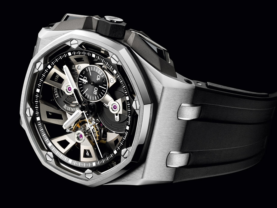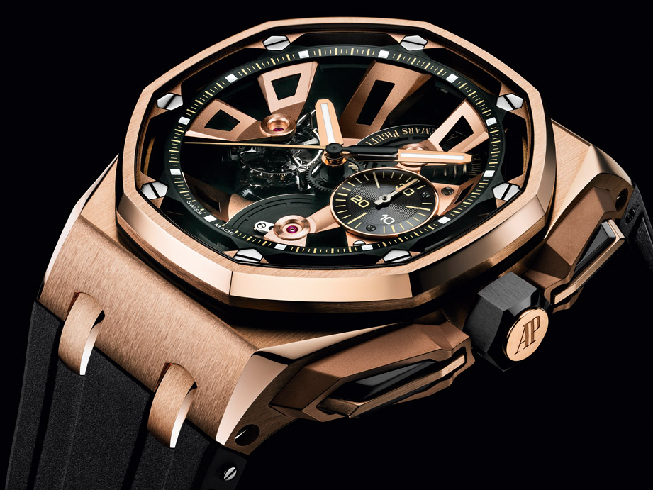 ▲新款皇家橡树离岸型陀飞轮计时码表一共推出不锈钢与玫瑰金两种版本,前者与系列的运动表渊源更贴近,后者则是展现高复杂工艺的尊贵感。