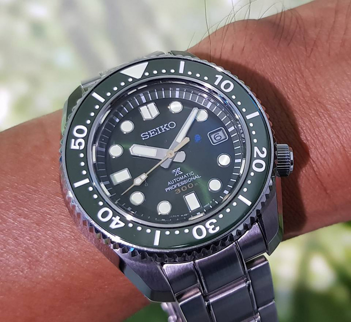 ▲绿色面盘与陶瓷表圈,挺酷的表款,跟它拼了,出个价吧!搭载高档的8L35自动机芯,表径44.3mm,订价台币10万3000元。