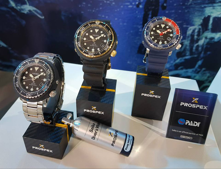▲Prospex爱海洋系列款,左2只为自动表,16000-18000元。右为太阳能机芯,15500元。