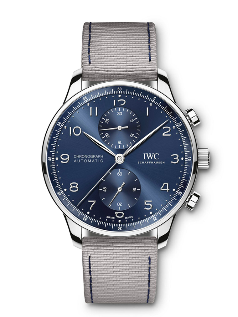 织物表带共有蓝色和浅灰色可选,适用表款为柏涛菲诺自动腕表、柏涛菲诺计时码表、葡萄牙计时码表。