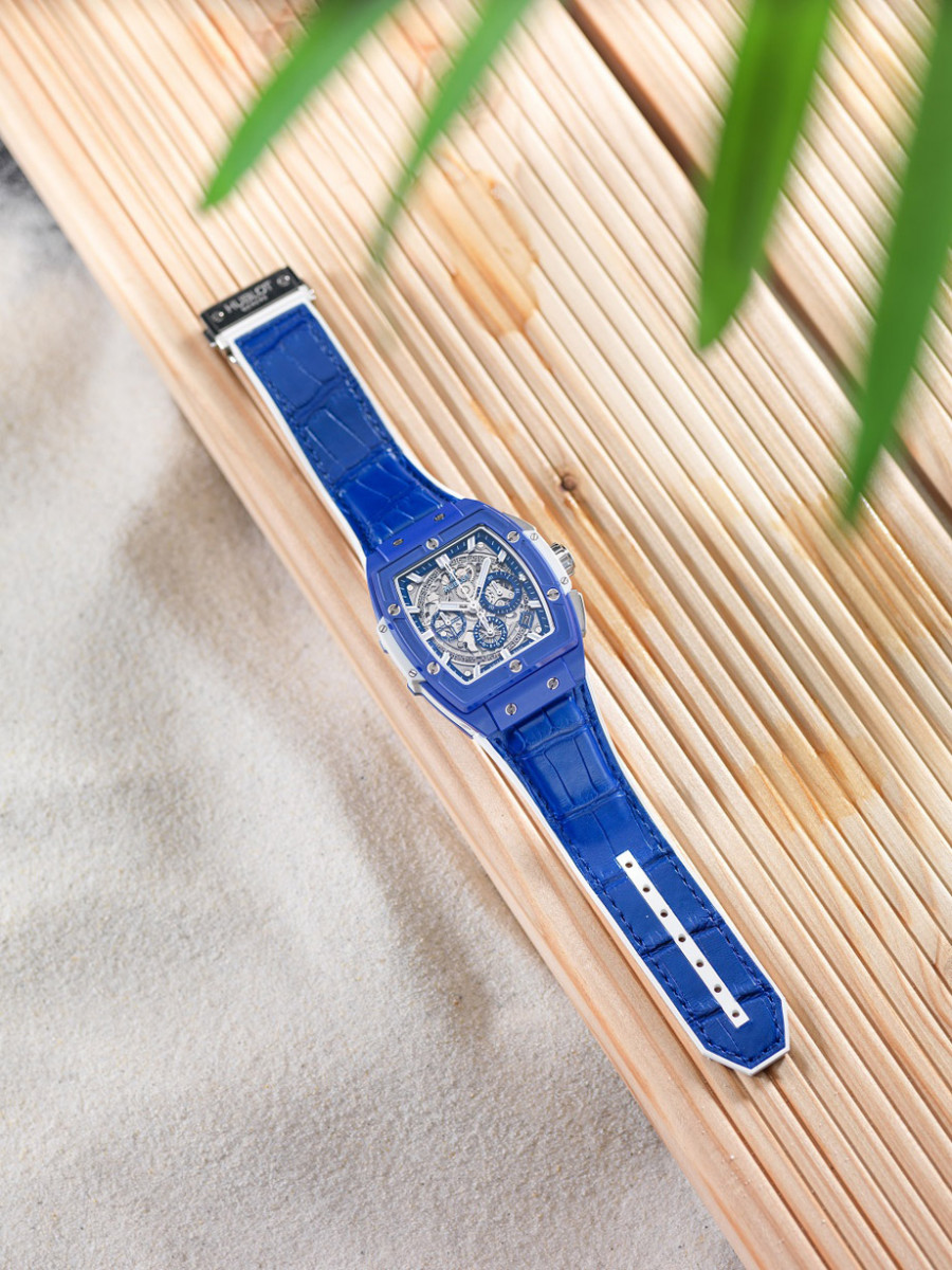 ▲宇舶表推出Spirit of Big Bang Blue夏季限定款,蔚蓝色陶瓷表壳,搭配同色系表带,展现欧洲浪漫的盛夏气息。