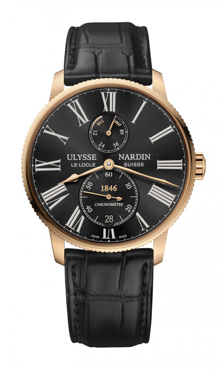 雅典表航海系列领航者腕表最初推出的设计为白色和蓝色面盘,而本次全新发布的两款新作分别为:不锈钢表壳搭配银灰色面盘的专卖店专属款和玫瑰金表壳搭配黑金面盘款式。腕表设计优雅简约,细长的罗马数字时标、饰以玫瑰金色的梨形指针和动力储存显示的”Haut”(高) 和”Bas”(低),以及刻有雅典表Logo的旋入式表冠。另外,小秒针和圆形日历窗位于6时位置,其品牌创立年份1846,以玫瑰金色呈现。表带则以优质的短吻鱷鱼皮带制作。