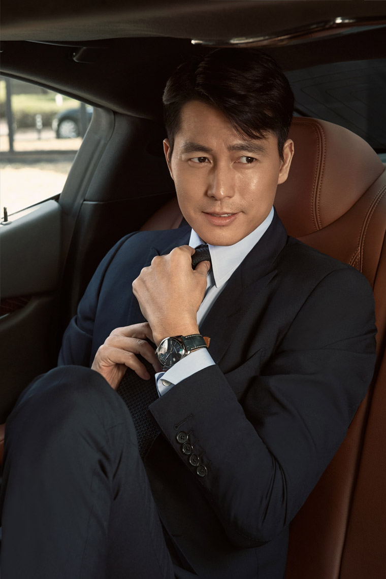 ▲韩国男星郑雨盛佩戴LONGINES巨擘系列午夜蓝腕表。