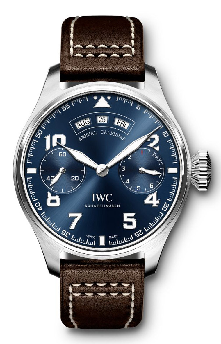 结构清晰的面盘一如驾驶舱仪表板一样精简到核心元素,清晰易读是最高准则。这只腕表的防水深度达60米,搭载35111自动机芯,完全满足专业飞行员腕表的走时精准性要求,动力储备长达42小时。不锈钢表壳搭载软铁内壳,可有效抵挡外来磁场的影响。深蓝色面盘,以及饰有奶油色缝线、让人联想起圣艾修伯里当年所穿飞行服顏色的棕色Santoni小牛皮表带,使此款腕表有着非比寻常的吸睛亮点。