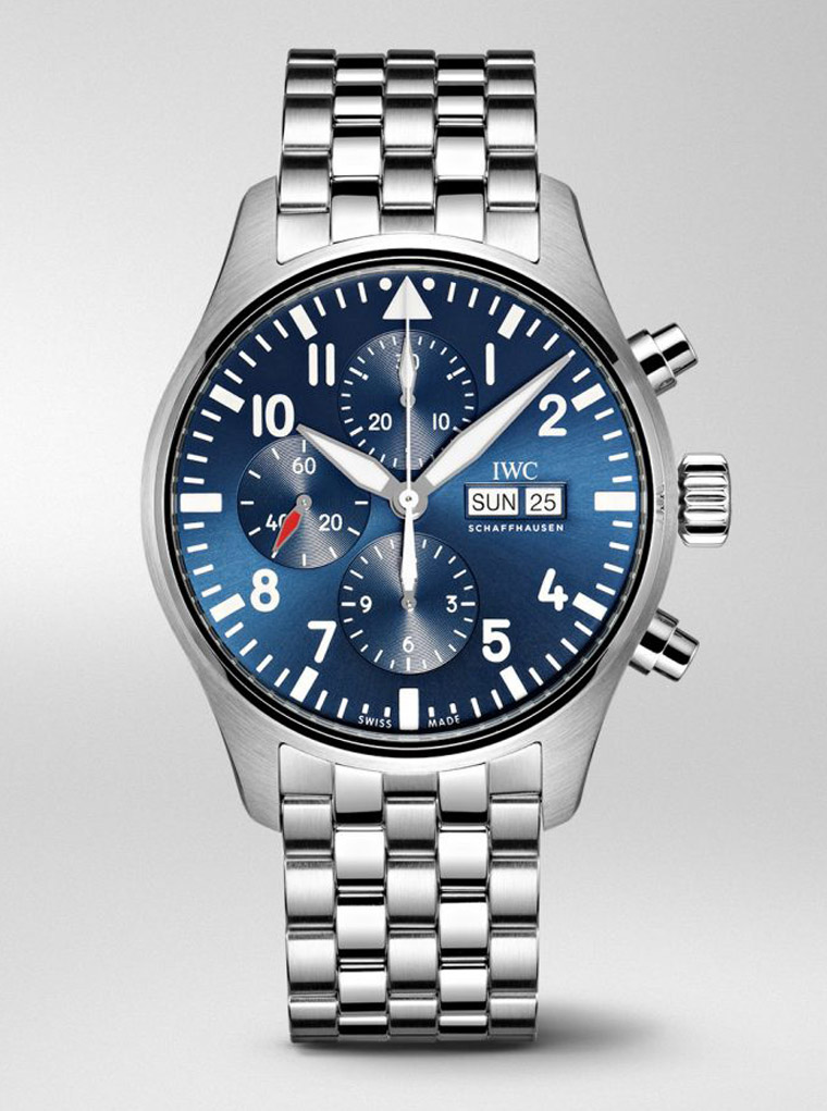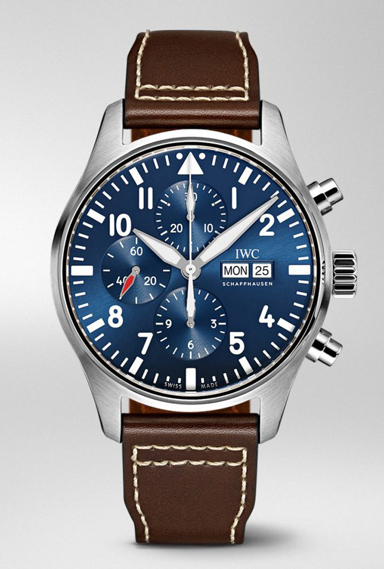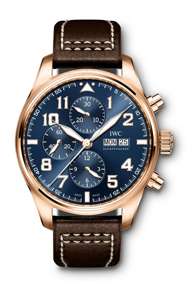 表款拥有功能性腕表的典型品质:精准性、功能性与可靠性。配备坚固耐用的79320计时机芯,腕表可记录长达12小时的分段及累计计时时间。软铁内壳可最佳抵受外来磁场的影响。深蓝色面盘是其特色所在,这款防水深达60米的时计搭载优雅的不锈钢链带或棕色Santoni小牛皮表带。在表底盖鐫刻身穿大衣,携带佩剑的小王子之形象。另外还有一款由18K玫瑰金制成的限量版,蓝色面盘和金质表壳相映成趣。此款典雅经典的飞行员腕表仅限量250只。