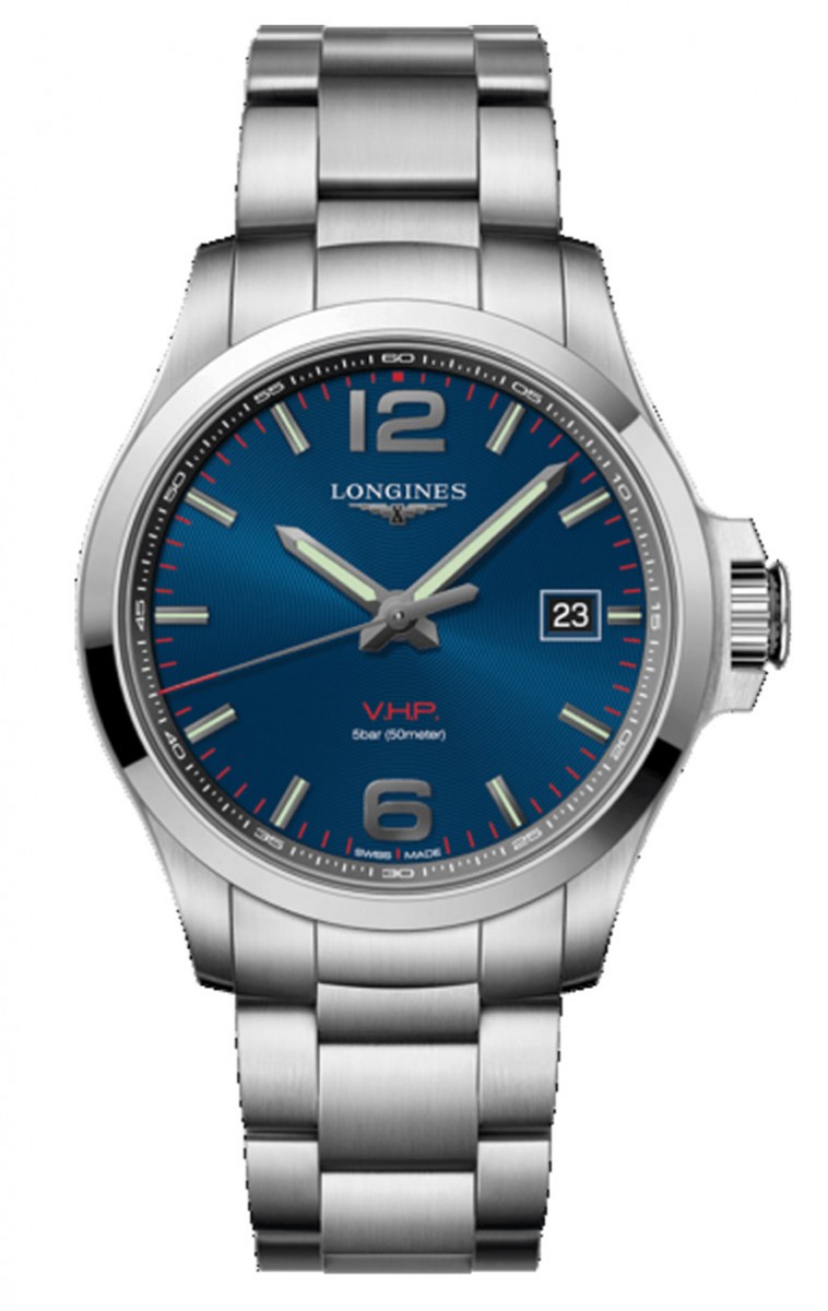 全新一代征服者系列V.H.P.腕表备有多样款式选择,表径43毫米的3针款式备有4款面盘:深邃优雅的蓝色、简洁时尚的银色、率性活力的黑色,全系列面盘上缀以鲜明的红色V.H.P.字样与环型刻度,为整体表款营造出率性独特、活力奔放的运动气息。本系列表款搭载ETA机芯表厂特别为LONGINES独家开发的石英机芯,其极致精准度(±5秒/年)大幅超越其他同类型腕表;并且此系列腕表能抗磁耐震,若暴露于磁场下或受到撞击后,具备自动重设指针的功能,以时时确保腕表的超高精准度,并具有超长电池寿命 (至少4年) 和万年历的功能。