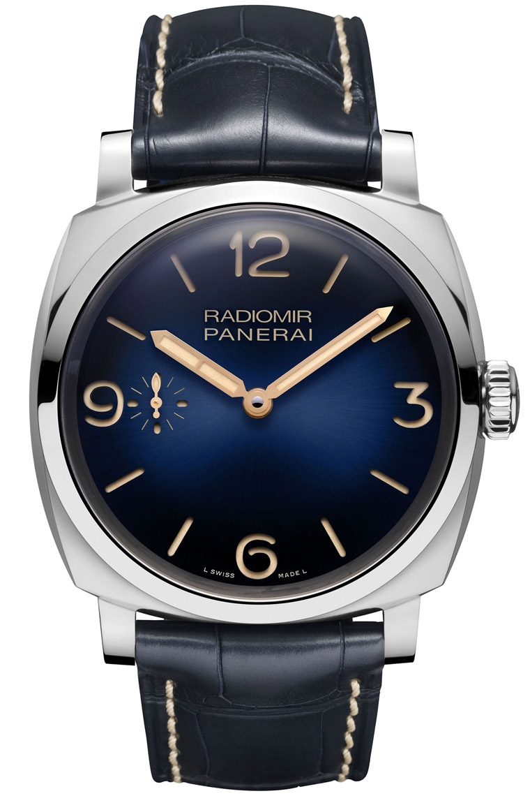 沛纳海专卖店最近新推一系列的Radiomir 1940 3 Days独卖款,共有五个款式,最大共通点就是面盘都採用蓝色放射状处理,映射出蓝色的光泽层次,让人想起品牌与大海的渊源,而且就像现在愈来愈多家喜欢在面盘顏色上做文章,这系列的蓝色面盘也没这麼简单,它採用外缘是深蓝,一路朝面盘中心转变为较浅的蓝色,形成一种色调的深浅层次,看起来既清爽也心旷神怡。