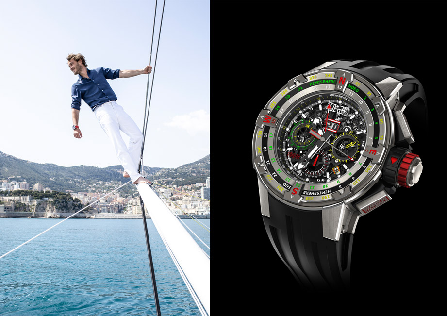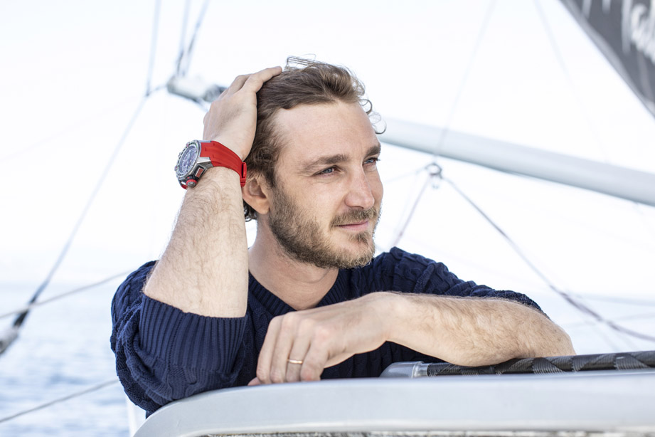 ▲Pierre Casiraghi佩戴RICHARD MILLE特地为海上运动所打造的RM 60-01 Regatta飞返计时码表。