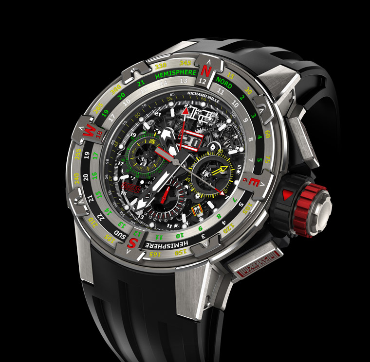 ▲RM 60-01身处南北半球都具备可指向的能力,此操作无需进行任何计算,这使它在同类型腕表中显得独树一帜。