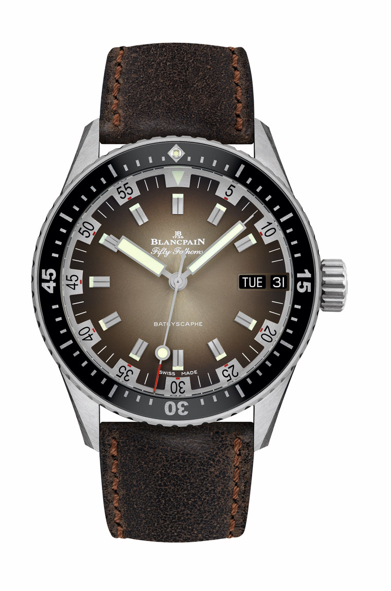 2018年五十噚家族展现出开枝散叶的多元性,其中包括以1970年代经典表款为设计灵感的五十噚Bathyscaphe深潜器70年代日期星期腕表、以及具备完整时间功能显示的五十噚Bathyscaphe深潜器全日历月相腕表,另外,还有功能升级的五十噚大日期腕表。三款全新表款皆延续经典五十噚的设计风格与优异性能,并搭载最新技术的自动上链机械机芯,这也使得从2007年复刻以来的五十噚演变出愈来愈丰富的样貌,得益于五十噚悠久的发展历史,使得现代的五十噚复刻表作获得许多设计上的概念启发。
