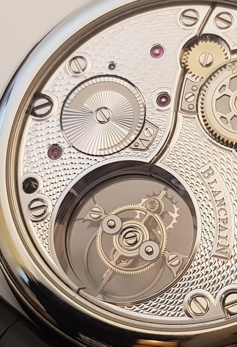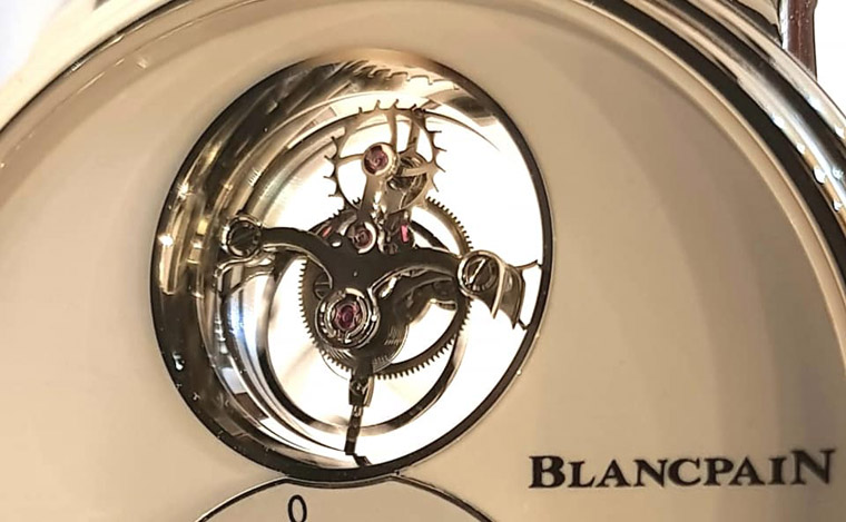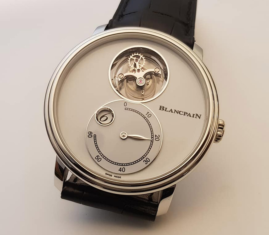 2018年发表的宝珀陀飞轮腕表结合逆跳又跳时的结构,展现时间工艺。