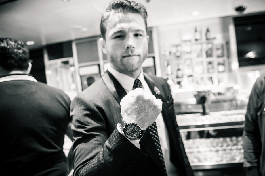 ROGER DUBUIS罗杰杜彼选择支持墨西哥拳击新起之星索尔·阿瓦雷兹(Santos Saúl Á lvarez Barragán,别名索尔·卡内罗·阿瓦雷兹Saul Canelo Alvarez,或简称卡内罗Canelo)。卡内罗在两种体重级别中多次获得世界冠军头衔,被评为世界最佳职业拳击手,儼然是位名副其实的战将。他于9月15日与当前WBA(世界拳击协会)、WBC(世界拳击理事会)、IBF(国际拳击联合会)和IBO(国际 拳击组织)的中量级世界冠军拳击手根纳季·戈洛夫金(Gennady Golovkin)进行复赛。在此备受瞩目的 对决中以及赛前新闻发布会中,这位强劲威武的新品牌大使戴着罗杰杜彼的识别性标记登场,其中包括在这场关键性的搏击赛期间,品牌的商标将会出现在他的运动短裤上。