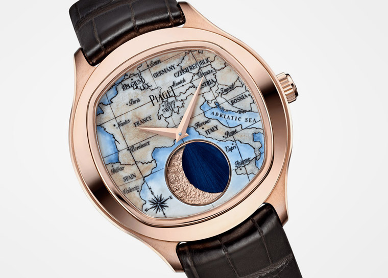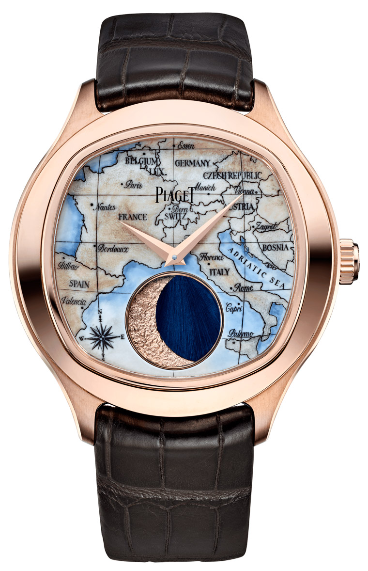 18K玫瑰金材质/860P自动上链机芯/时、分显示/月相显示/贝雕欧洲地图面盘/蓝宝石水晶镜面/表径46.5mm/参考价:NT$ 3,490,000