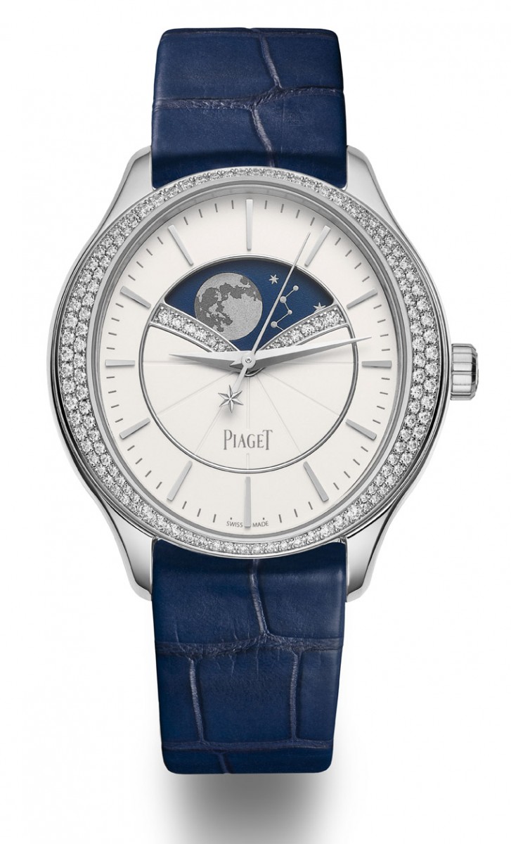 18K白金材质/584P自动上錬机芯/时、分、秒显示/月相显示/表壳镶钻126颗/蓝宝石水晶镜面/表径36mm/参考价:NT$ 1,020,000